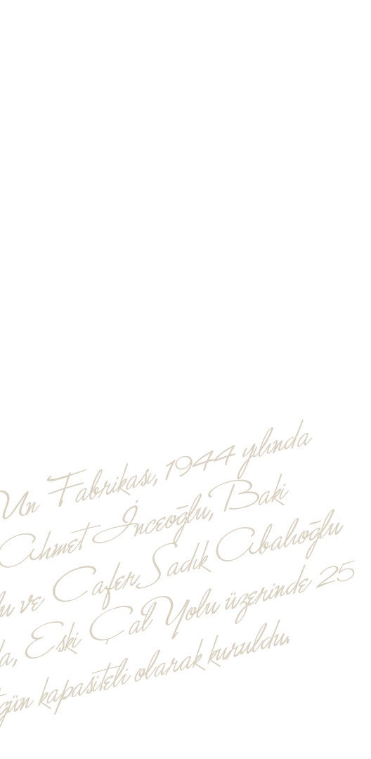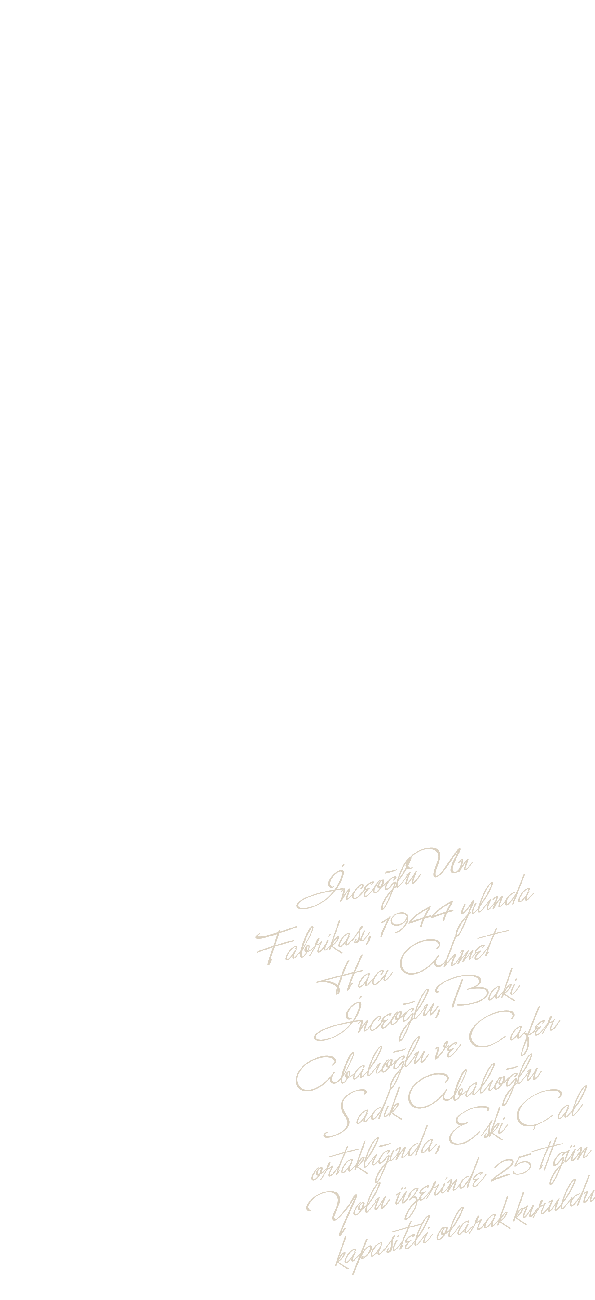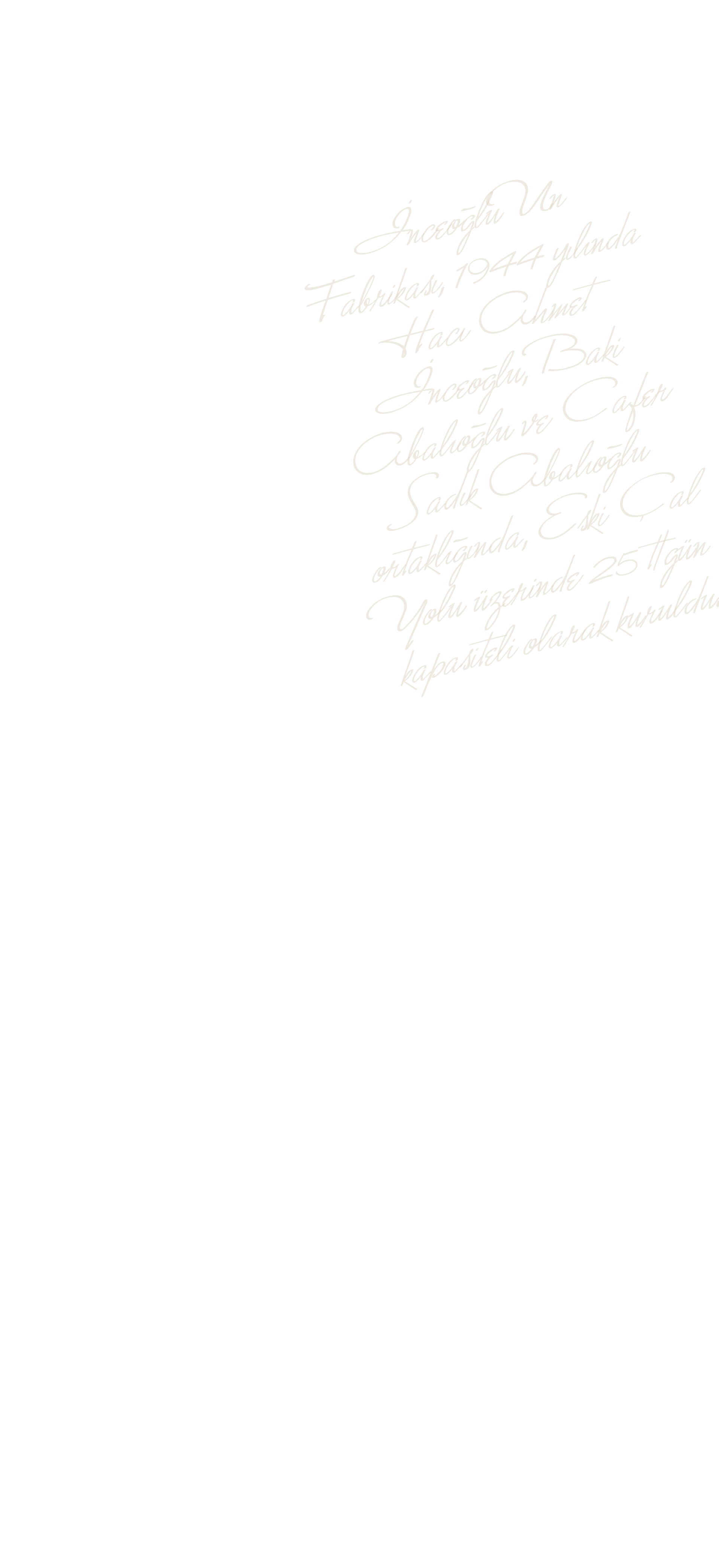 2007’de yapılan yeniden yapılandırma ile “İNCEOĞLUN” markasıyla üretim yapmaya başladı. Revizyonlarla 300 t/gün öğütme kapasitesine ulaşan İnceoğlu Un Fabrikası, bugün modern gıda işletmeciliğinin uluslararası standartlarında üretim yapmaktadır.